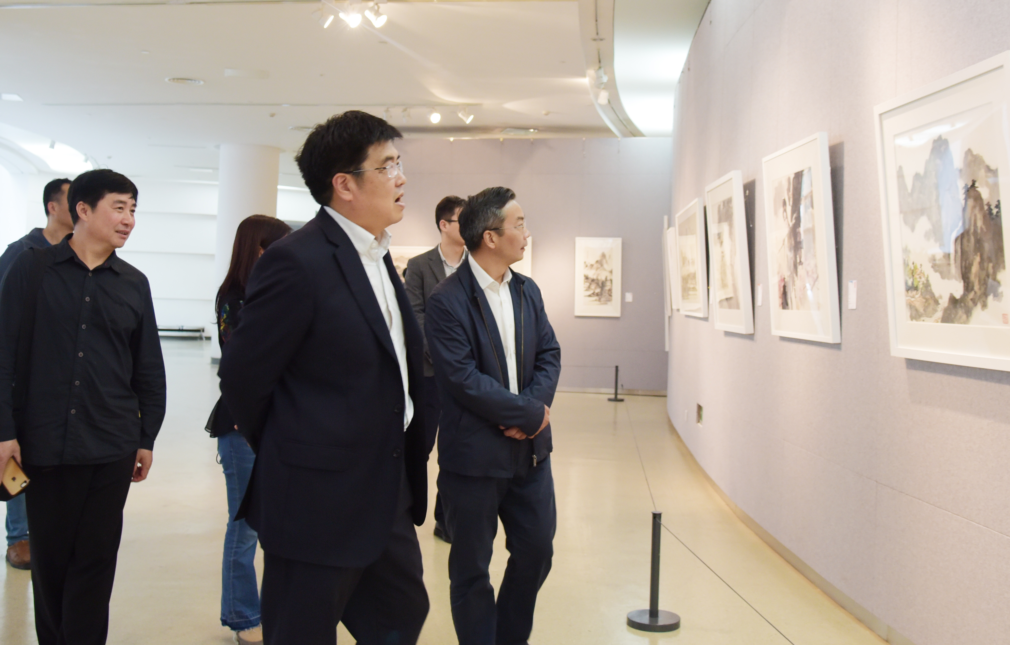 隨后,李嘯院長還帶領書畫愛好者和學生們一同參觀畫展,現場為大家講解新金陵畫派的特點與傳承。《新金陵畫派運河沿岸藝術交流展》分為四大篇章:一是“九老" 傅抱石等人作品,反映了當時新中國的人民生活和社會精神; 二是當代藝術家宋玉麟等作品,講述了當代藝術家繼承新金陵畫派理念在藝術上的創新,在文化上的包容與傳承;三是“新生代”作品,聚焦創作創新、多元化、百花齊放; 四是巡展城市交流作品,展現運河沿岸多種文化交流的繁榮發展。