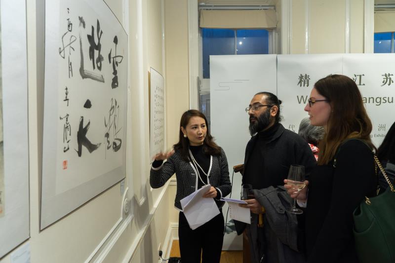 英國中華傳統文化研究院創始人單桂秋林女士表示中華傳統文化研究院將一如既往支持中英之間的交流活動,也邀請江蘇有越來越多的藝術走出國門,來到英國;英國畫家Jane Gray非常喜愛中國藝術,她認為藝術充滿靈性,同時她也希望可以看到更多優秀的中國畫家的作品可以到英國展出。