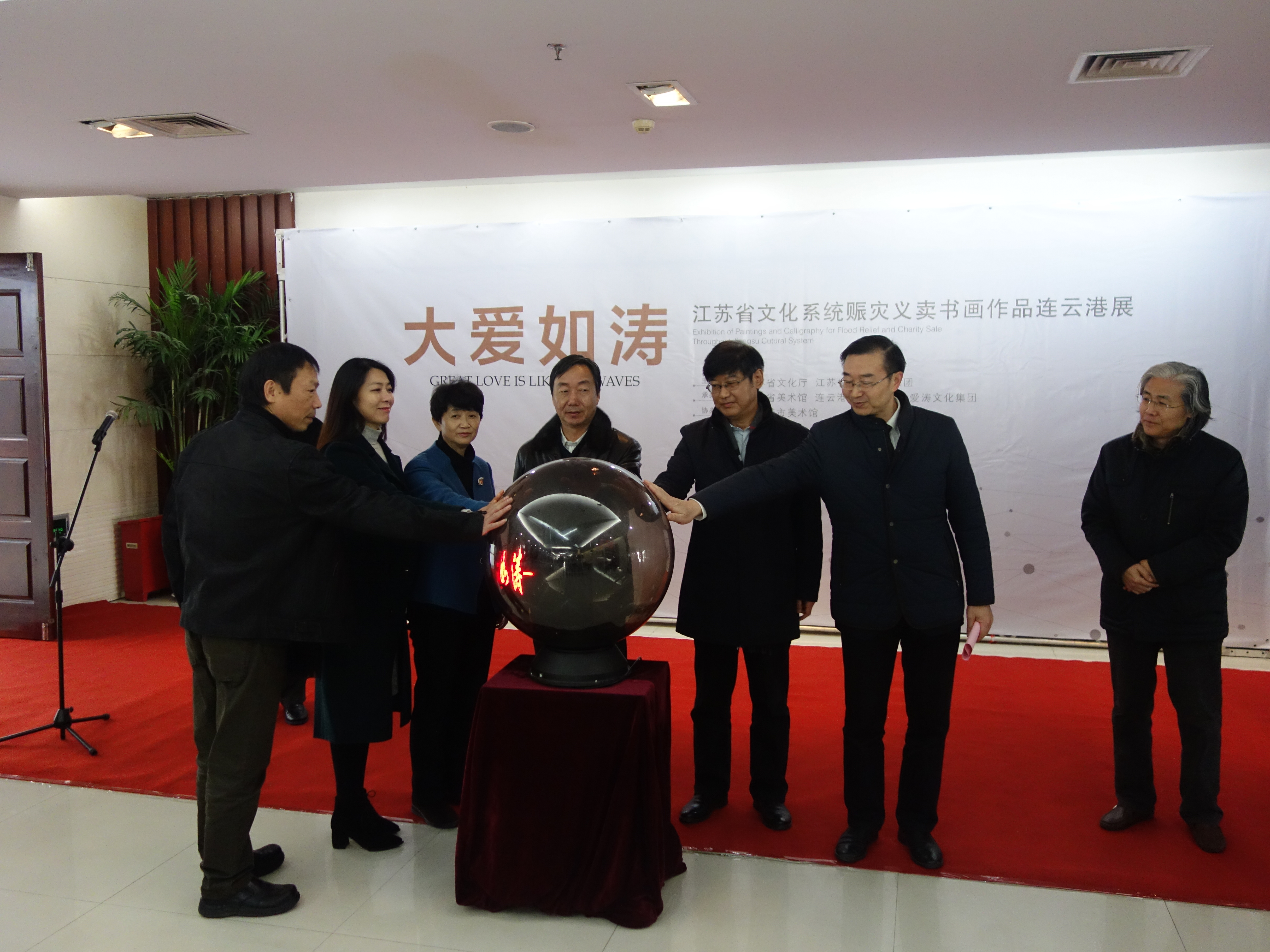 由江蘇省文化廳、江蘇省蘇豪控股集團(tuán)共同主辦,江蘇省美術(shù)館、連云港市文廣新局、愛(ài)濤文化集團(tuán)共同承辦,連云港市美術(shù)館協(xié)辦的《大愛(ài)如濤——江蘇省文化系統(tǒng)賑災(zāi)義賣(mài)書(shū)畫(huà)作品連云港展》,于12月9日在連云港市美術(shù)館正式開(kāi)幕,展期11天。