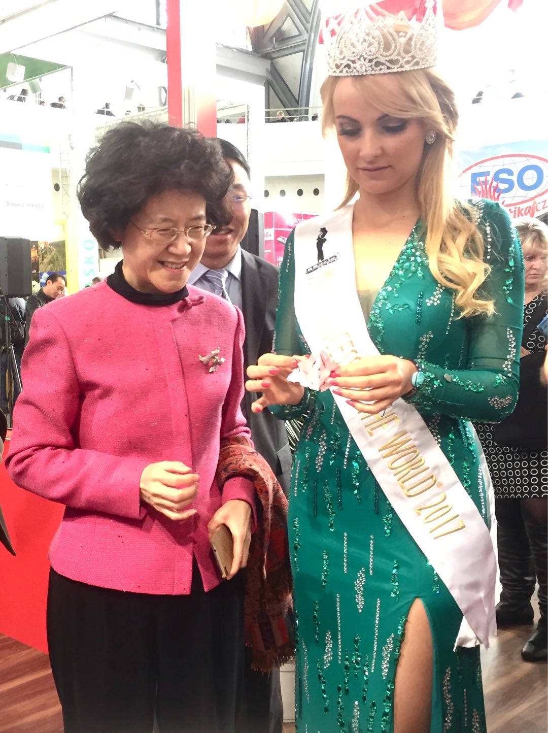 當(dāng)?shù)貢r間2月15日,在捷克首都布拉格展覽中心,愛濤文化集團(tuán)“歡樂春節(jié)·精彩江蘇”文化藝術(shù)展演團(tuán)為第27屆捷克“假日世界”國際旅游交易會助力展演。駐捷大使馬克卿女士、捷克地方發(fā)展部部長多斯塔洛娃女士、江蘇省文化廳副廳長劉愛華、江蘇省文化廳對外交流處副處長周云鳳蒞臨中國展位,愛濤文化集團(tuán)總經(jīng)理陳云梅向來賓介紹了愛濤文化集團(tuán)“歡樂春節(jié)·精彩江蘇”文化藝術(shù)展演團(tuán)為本次旅游交易會精心準(zhǔn)備的展演節(jié)目。