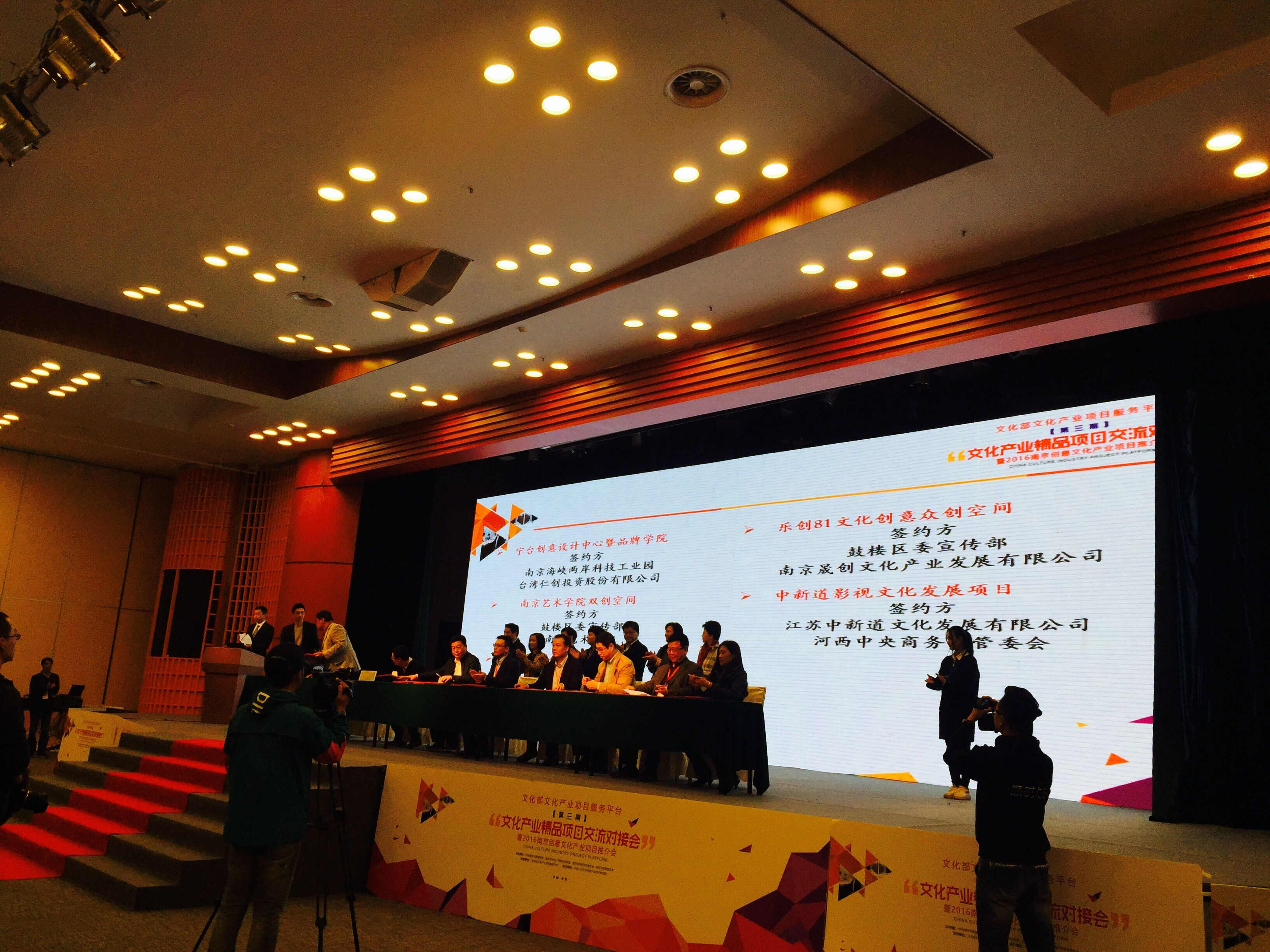 10月28日下午,江蘇省文化產權交易所(以下簡稱江蘇省文交所)副總經理王偉濤及總經理助理周凌云帶領股權交易中心團隊,在第八屆南京文化創意產業交易會第三期“文化部文化產業精品項目交流對接會”會議議程中,與中文寰匯(南京)文化發展有限公司成功簽訂戰略合作協議。本次文交會由文化部文化產業項目服務平臺支持,南京市委宣傳部(市文資辦)、南京市文廣新局主辦,中國人民大學創意產業技術研究院承辦。