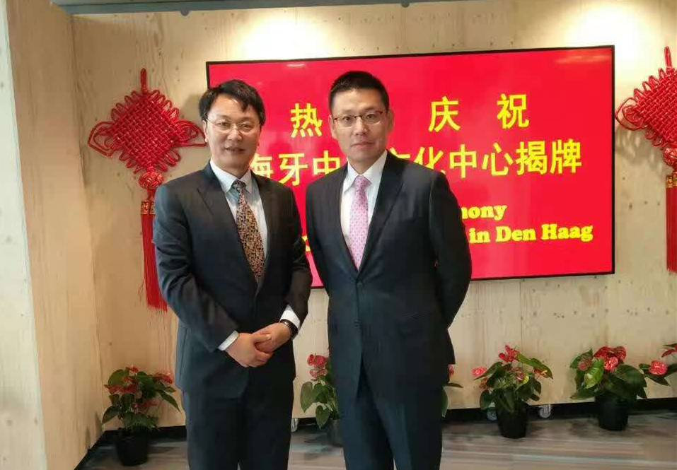 當地時間11月24日下午,海牙舉行了荷蘭第一個中國文化中心的揭牌儀式,中國文化部副部長丁偉、荷蘭文化部總干事瑪爾揚·哈默思瑪(Marjan Hammersma)、中國駐荷蘭大使吳懇和海牙副市長卡斯騰·克萊恩(Karsten Klein)出席并致辭,共同為中心揭牌。江蘇省文化廳徐耀新廳長、愛濤文化集團常務副總經理陳云梅、弘業股份常務副總經理伍棟等出席了揭牌儀式。